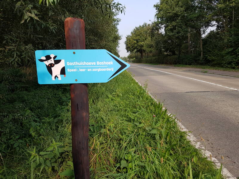 Onze hoeve ligt vlakbij het Bos- en beemdenpad. (wandelgebied Zuidrand) Waar dit pad de Boshoekstraat in Hove kruist, wandel je richting Lintsesteenweg (naar het westen). 200 meter verder vind je de kasseiweg naar onze hoeve aan je linkerkant.