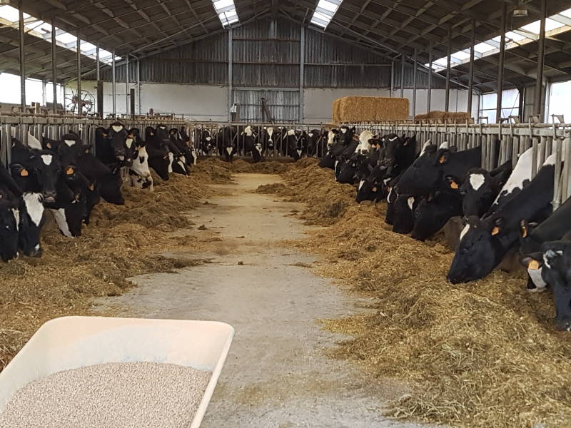 Onze melkkoeien, net bijgevoerd met hun rantsoen van onder andere maïs en gras.